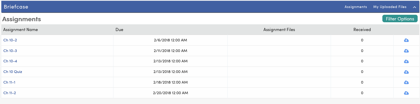 In one case the Enable Briefcase Portal Pick has been turned on, the teachers volition see their Briefcase on the Home page when they log into the Teacher Portal. The Briefcase consists of an Assignment Section and an Upload Files section.